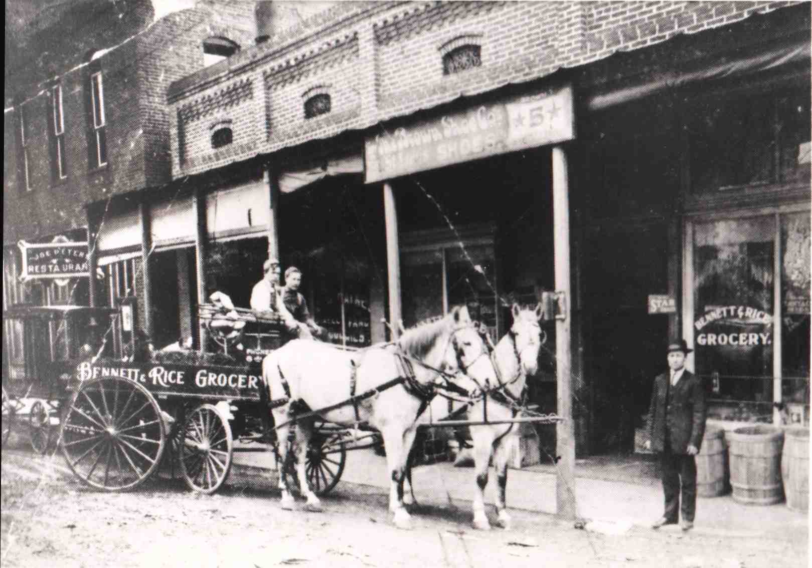 The land upon which Lesmeister Guesthouse stands was purchased February 24, 1902, by Henry Lesmeister, who proceeded to construct the building. Electricity didn’t come to Pocahontas until 1911, so Lesmeister’s building was originally lit only by its large east- and west-facing windows, and oil lamps. The streets in downtown Pocahontas were first paved in 1928. The land for the building was purchased from a larger plot of property in downtown Pocahontas that was purchased from Minnie Beauvais by Carl J. Roellin, June 4, 1894. Henry Lesmeister and his wife Martha Whipperman Lesmeister had immigrated to America from Essen, Germany, first settling in Lexington, Kentucky, before moving in 1880 to Pocahontas with their son, Henry Jr. and their daughter Theresa Frances. Henry Jr. became a noted architect who designed the grandest buildings in downtown Pocahontas, including his father’s building that now houses Lesmeister Guesthouse. Henry Jr. also designed the roof on St. Paul the Apostle Catholic Church in Pocahontas, with its king trusses that carry the building’s roof without need for interior support posts. Henry Jr. also designed many buildings in nearby Jonesboro and as far away as Memphis, Tennessee. With time, young Theresa Frances Lesmeister became the bride of Hubert A. Peters, whose family had come to America from Aachen, Germany, settling first in Columbus, Ohio, before moving to Pocahontas in 1880. Initially, Peters opened Peters Grocery in the north half of the Lesmeister building, with Bennett and Rice Grocery opening soon after that in the south half of the building. Peters Grocery sold “everything from thread to harnesses”.